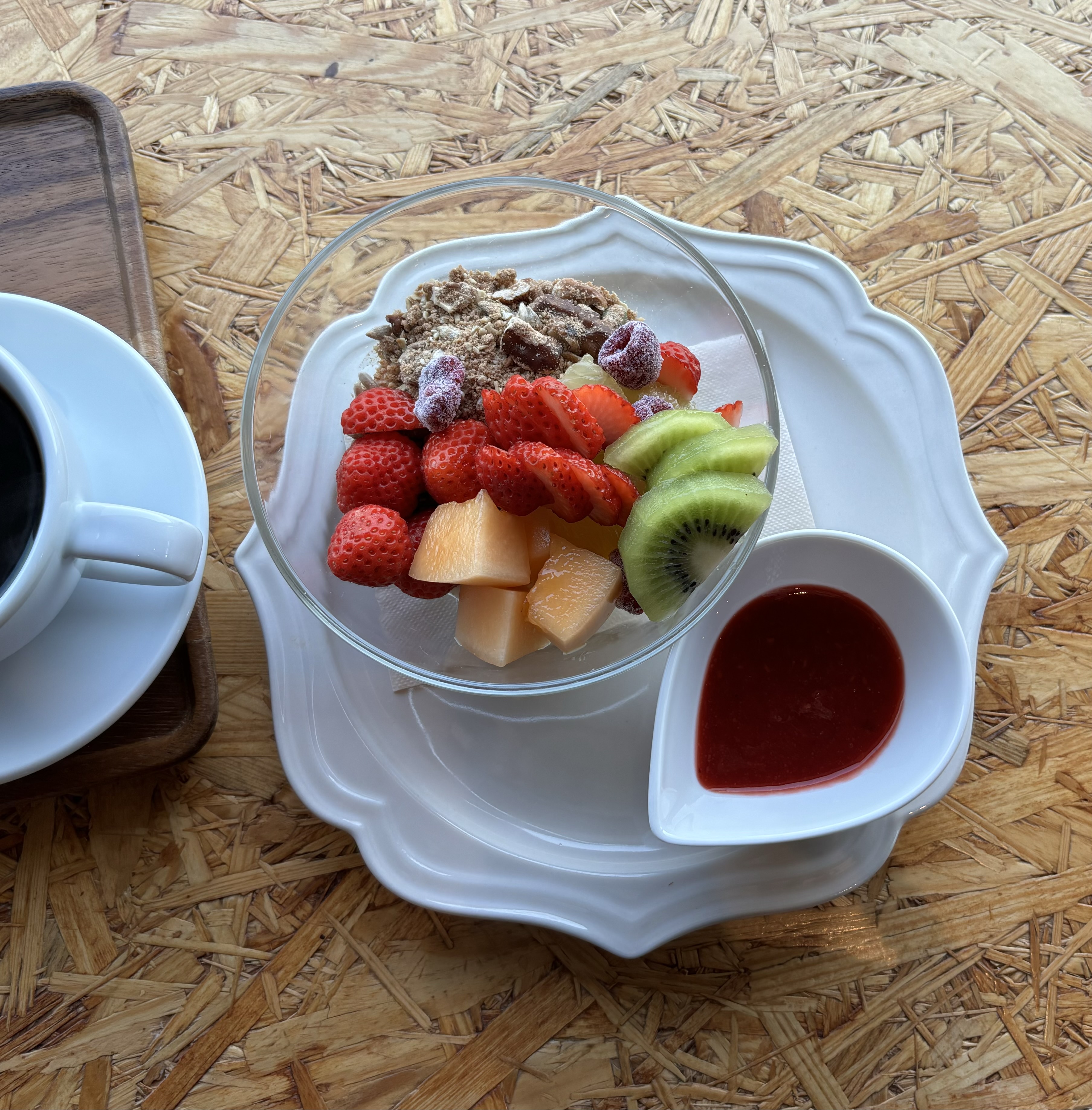 朝:モーニングメニューのグラノーラを食べに行く こういうものが食べれるとテンションがアガる